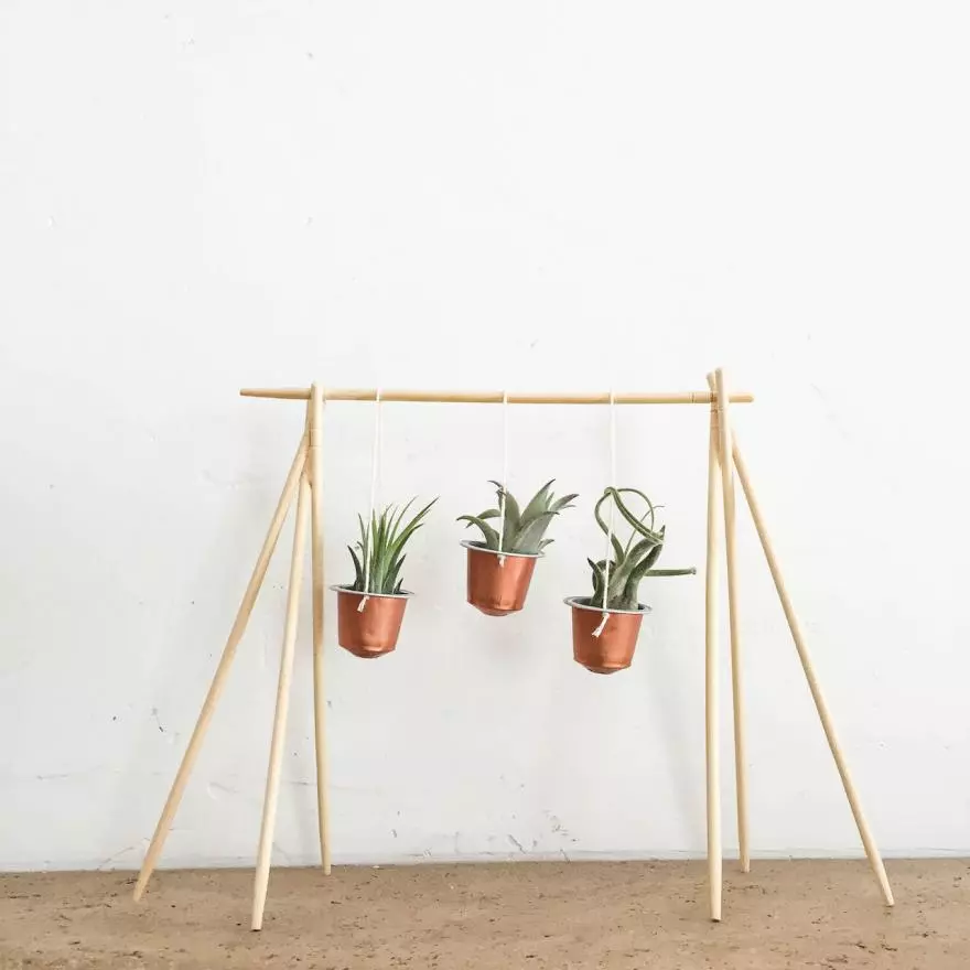 Offrez une deuxième vie aux capsules à café avec ce petit portique facile à réaliser avec quelques baguettes, de la colle, de la ficelle et des ciseaux… Seule contrainte, il faut trouver de minuscules pousses de succulentes ou de tillandsias qui puissent rentrer dans ces contenants riquiqui…