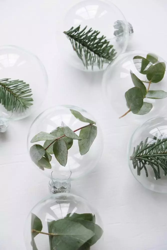 Pour un cadeau éphémère original et délicat, achetez dans un magasin de loisirs créatifs des boules en verre à remplir, et glissez simplement à l’intérieur une petite branche d’eucalyptus, de sapin ou de houx… Cette jolie décoration de fin d’année tiendra plusieurs semaines.