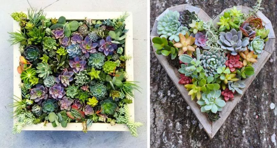Et si vous offriez un tableau réalisé avec amour ? Oh, pas la peine de savoir dessiner, il suffit de planter serré de nombreuses variétés de succulentes de toutes les couleurs. Le résultat est magnifique, non ?