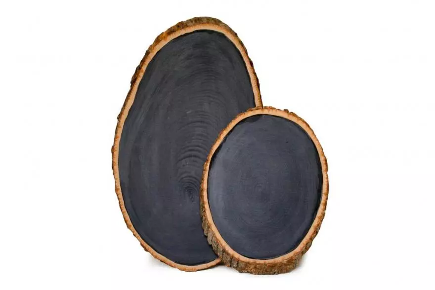 Et les enfants alors ? Surprenez-les avec ces tablettes réalisées avec des rondelles d’arbre peintes avec de la peinture ardoise..